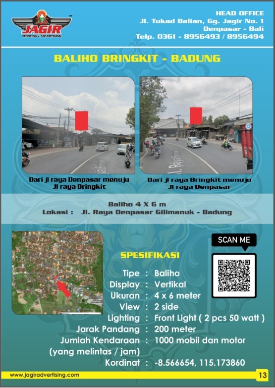 Kami menyediakan layanan penyewaan baliho & billboard untuk berbagai kebutuhan promosi. Hubungi kami di 08123859561 ( Weda Jagir ) atau Whatsapp dibawah untuk informasi dan pemesanan baliho atau billboard seluruh Bali.